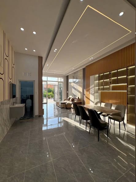 - Tầng trệt: Bao gồm sân để xe rộng, phòng khách, khu vực bếp, một phòng ngủ tiện lợi và nhà vệ sinh.