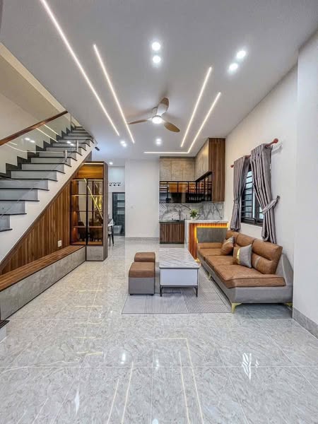 Căn nhà được xây dựng kiên cố với kết cấu trệt lầu, bao gồm các khu vực chức năng chính: