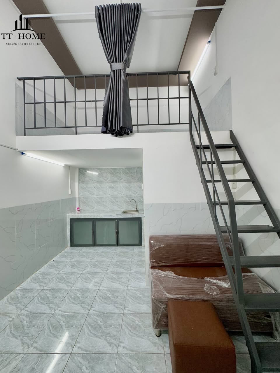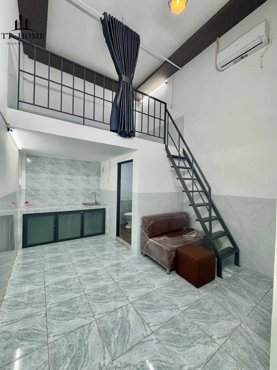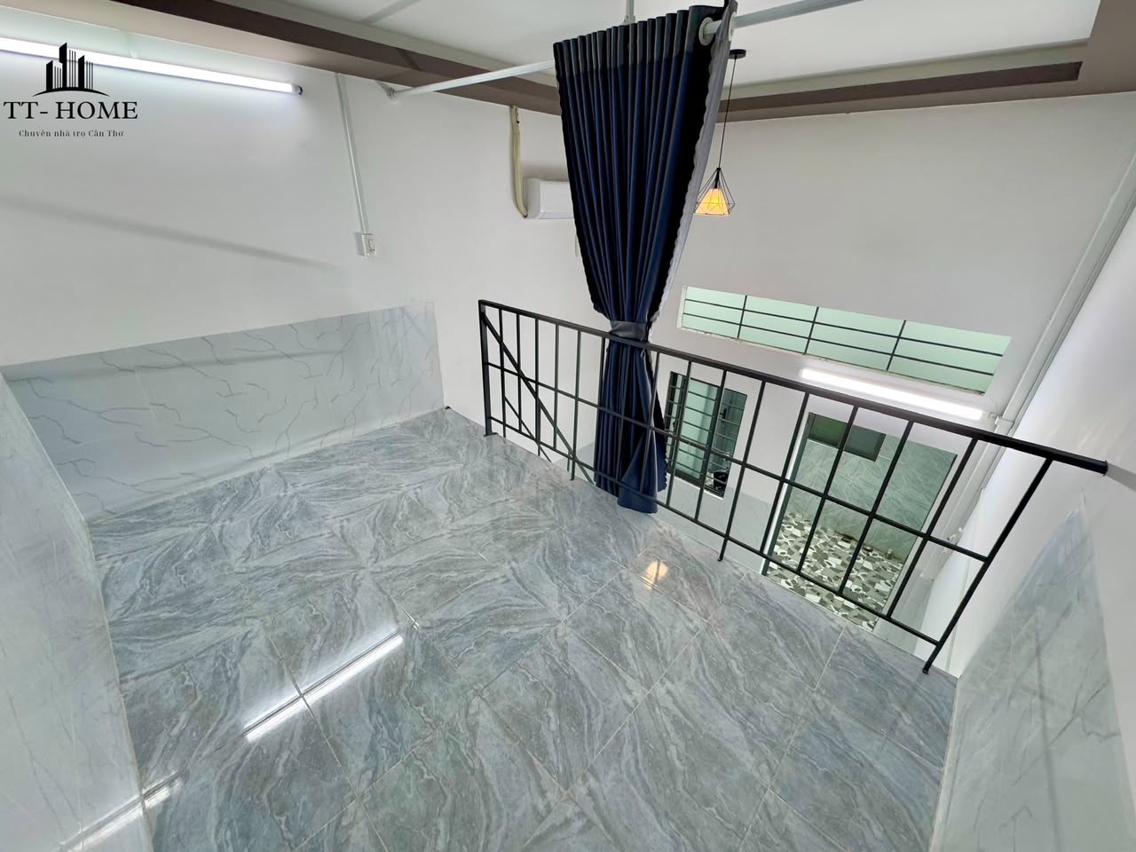 Căn phòng trọ Mini house có diện tích khoảng 25m², được thiết kế tối ưu không gian để đảm bảo sự tiện nghi cho người ở. Về nội thất cơ bản, phòng đã được trang bị máy lạnh giúp làm mát hiệu quả trong những ngày nóng bức của Cần Thơ và rèm cửa tạo sự riêng tư, điều chỉnh ánh sáng.
