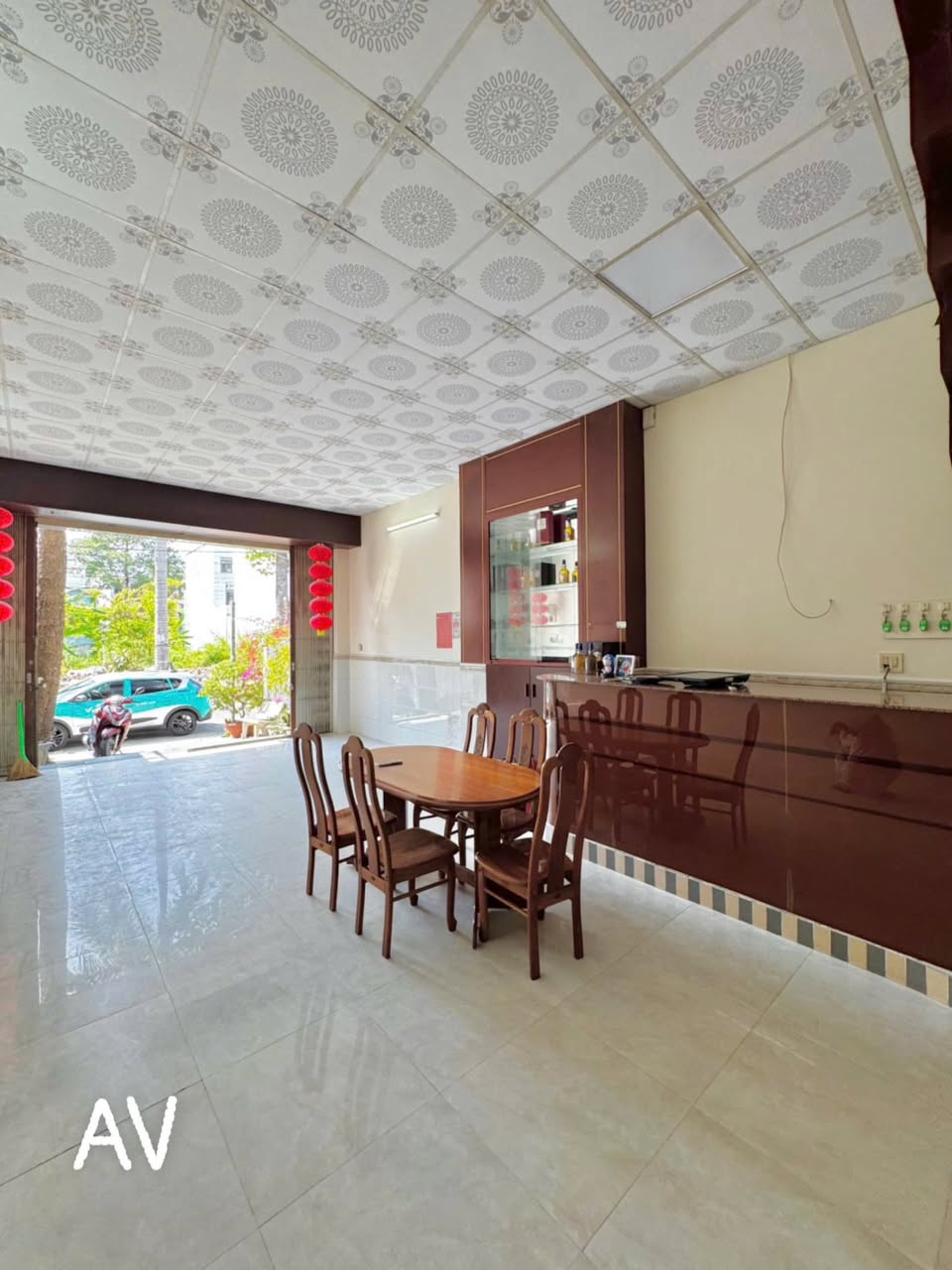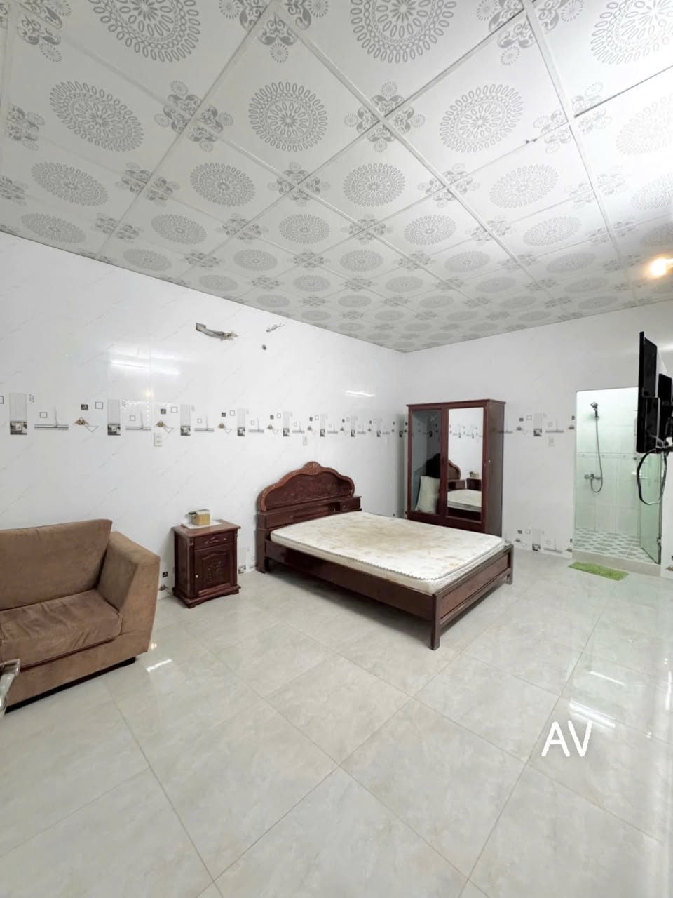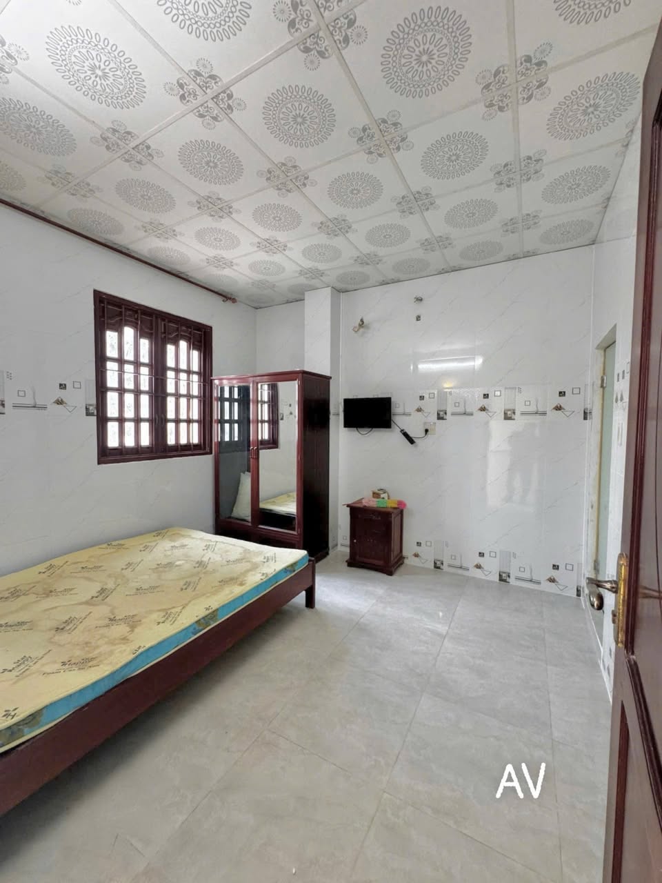 Căn nhà nghỉ có diện tích 5m x 24m với tổng diện tích sử dụng 350m2. Kết cấu gồm một trệt, hai lầu mới xây, bao gồm phòng khách, 8 phòng ngủ đã trang bị đầy đủ nội thất, 9 toilet, sân sau và thang thoát hiểm.