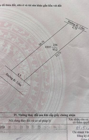 - Diện tích: Nền đất có chiều rộng 4.5m và chiều dài 21m, tổng diện tích là 93m², đủ rộng rãi để xây dựng nhà ở tiện nghi.