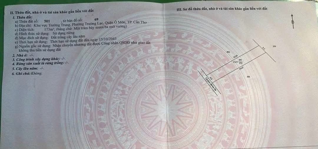 - Hướng: Đất có hướng Tây Nam, đón nắng và gió tự nhiên, tạo không gian sống thoáng đãng.