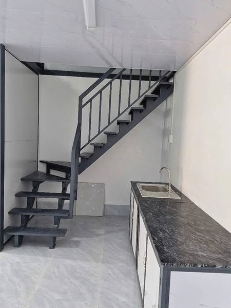 - Kết cấu: Nhà được xây dựng theo dạng trệt lửng. Tầng trệt được thiết kế trống suốt, rất linh hoạt để bố trí phòng khách, khu vực kinh doanh hoặc không gian sinh hoạt chung tùy theo nhu cầu của người thuê. Tầng lửng bao gồm 1 phòng ngủ riêng biệt và 1 toilet, tạo không gian riêng tư cho gia đình.