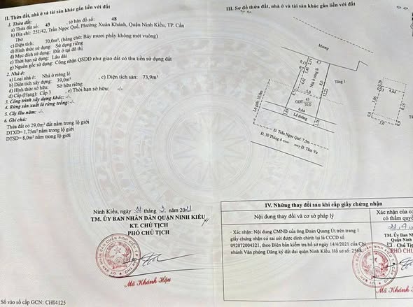 Cần bán nhà mặt tiền đường Trần Ngọc Quế – Tầm Vu, một trong những khu vực kinh doanh sầm uất tại Cần Thơ. Bất động sản này sở hữu vị trí chiến lược, pháp lý rõ ràng và tiềm năng phát triển vượt trội, phù hợp cho mọi nhu cầu mua bán, kinh doanh hoặc đầu tư.