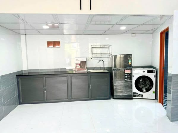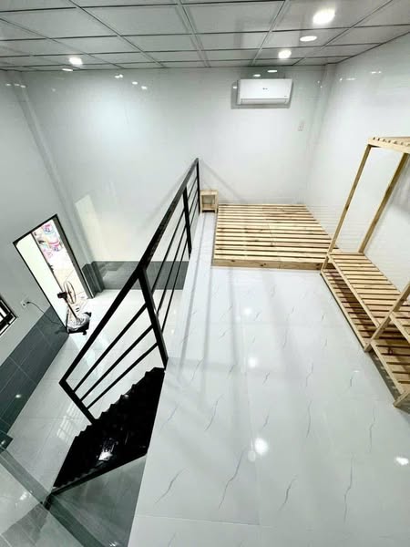 Căn mini-house có tổng diện tích sử dụng là 30m2, được thiết kế theo cấu trúc 1 trệt 1 lửng. Đây là dạng nhà ở hiện đại, tối ưu không gian, tạo cảm giác thông thoáng và riêng biệt so với phòng trọ truyền thống. Cấu trúc này phân tách rõ ràng khu vực sinh hoạt chung ở tầng trệt (bao gồm bếp và toilet) và khu vực nghỉ ngơi trên gác lửng, đảm bảo sự riêng tư cần thiết cho người thuê. Căn nhà được mô tả là cao ráo và không bị ảnh hưởng bởi tình trạng ngập nước, mang lại sự yên tâm trong mùa mưa.