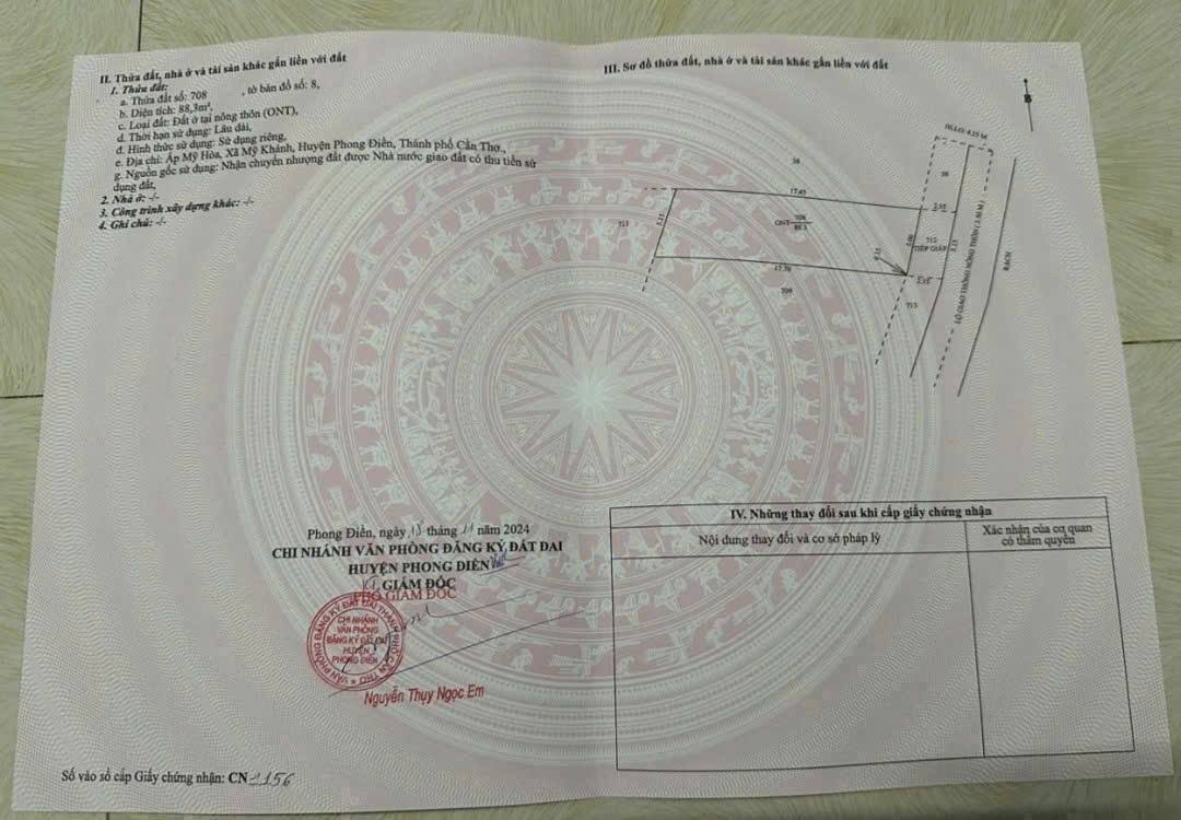 - Pháp lý: Đất bao gồm 88,3m² đất ở đô thị (ODT) và 12,9m² đất trồng cây lâu năm (CLN).