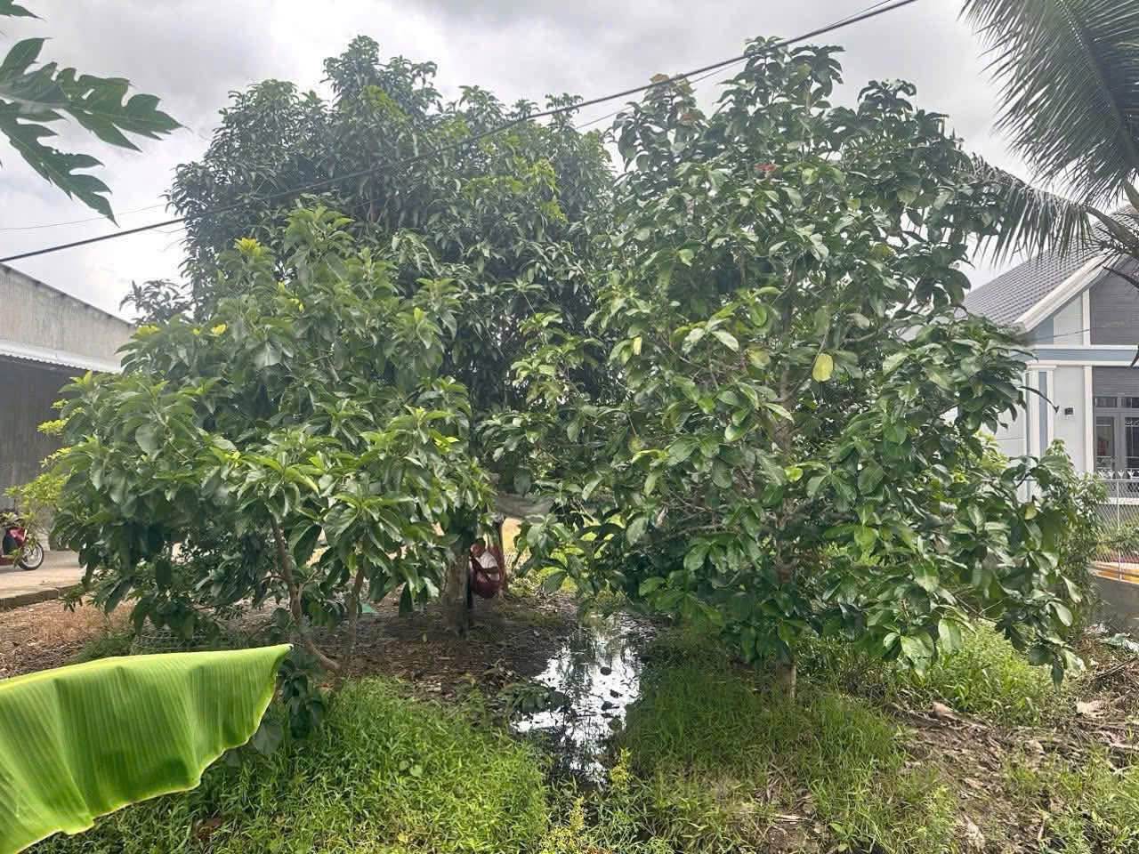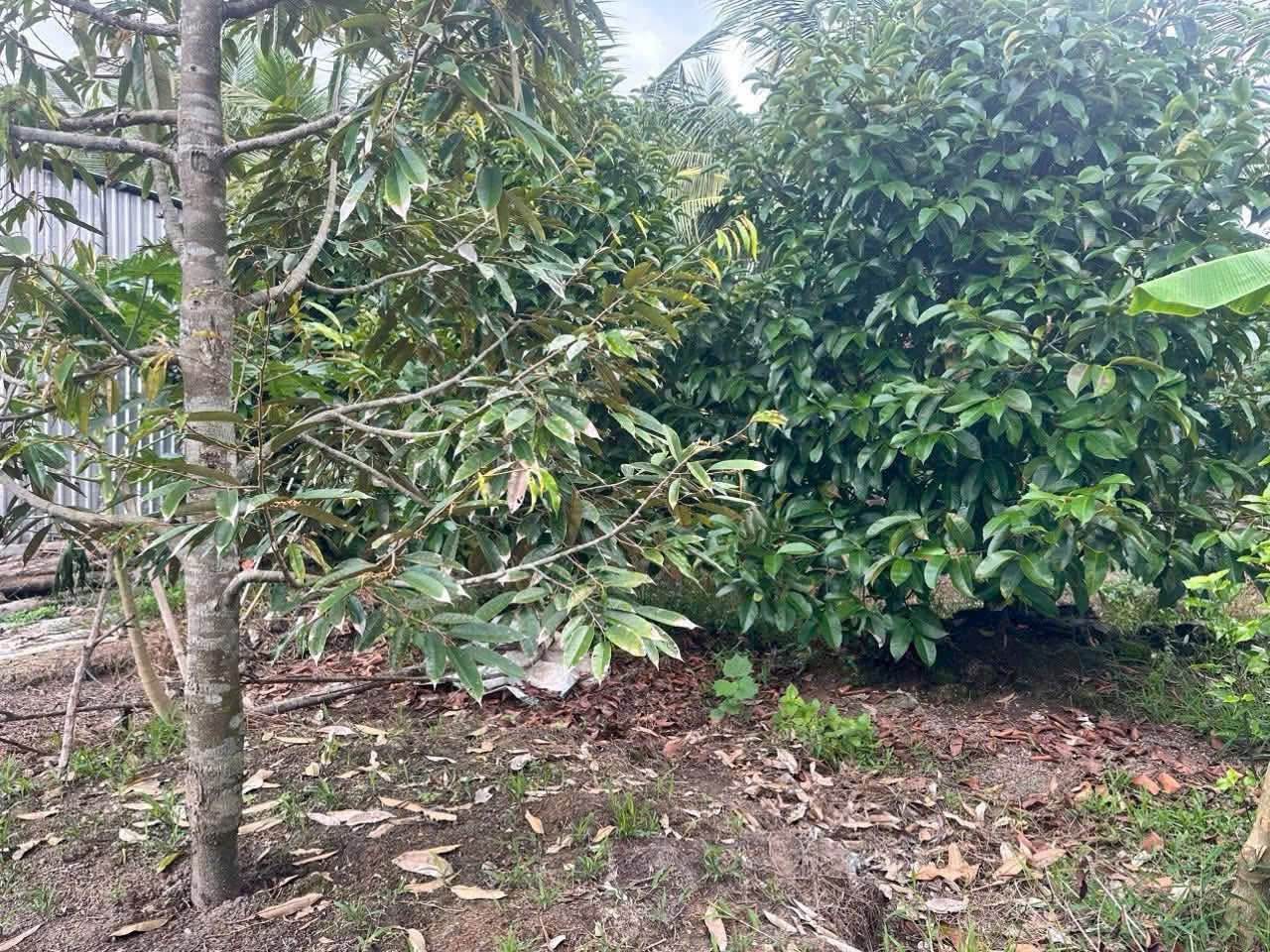 - Hiện trạng đất: Trên đất hiện có sẵn nhiều loại cây ăn trái lâu năm như Sầu Riêng, Măng Cụt, Xoài, Dừa, Bơ, Sa Bô, Bưởi, tạo không gian xanh mát và gần gũi thiên nhiên.