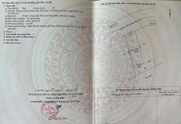 Nền đất mặt tiền đường Trần Quang Diệu, phường An Thới, quận Bình Thủy, Cần Thơ đang chờ chủ sở hữu mới. Với vị trí đắc địa gần Chợ Cầu Ván, pháp lý đầy đủ, đây là cơ hội đầu tư và an cư lý tưởng tại khu vực.