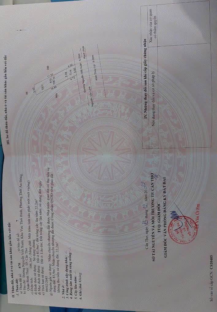 - Về pháp lý, nền đất có giấy tờ rõ ràng với 84m² thổ cư và 22m² đất trồng cây lâu năm (CLN), đã được cập nhật đầy đủ trên sổ đỏ.