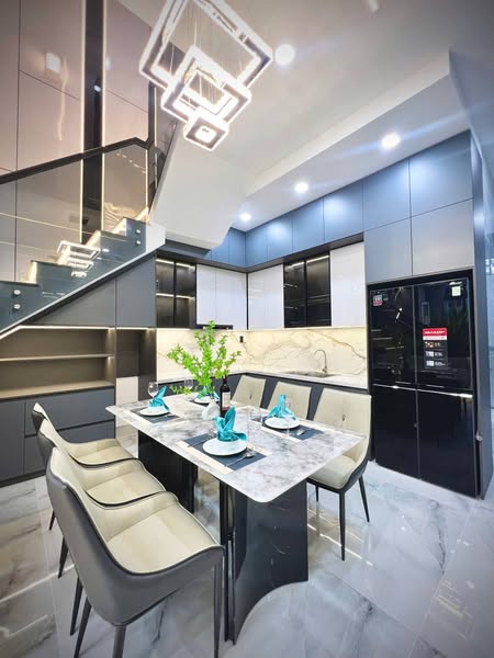 Với diện tích sử dụng lên đến 240m2, căn nhà được thiết kế 1 trệt 2 lầu đúc kiên cố, bao gồm phòng khách rộng rãi, bếp ăn tiện nghi, 4 phòng ngủ thoải mái, 4 WC hiện đại, phòng thờ trang nghiêm và sân thượng thoáng đãng. Đặc biệt, căn nhà được trang bị full nội thất cao cấp, đồng bộ như hình ảnh, giúp bạn tiết kiệm thời gian và công sức trong việc trang trí.
