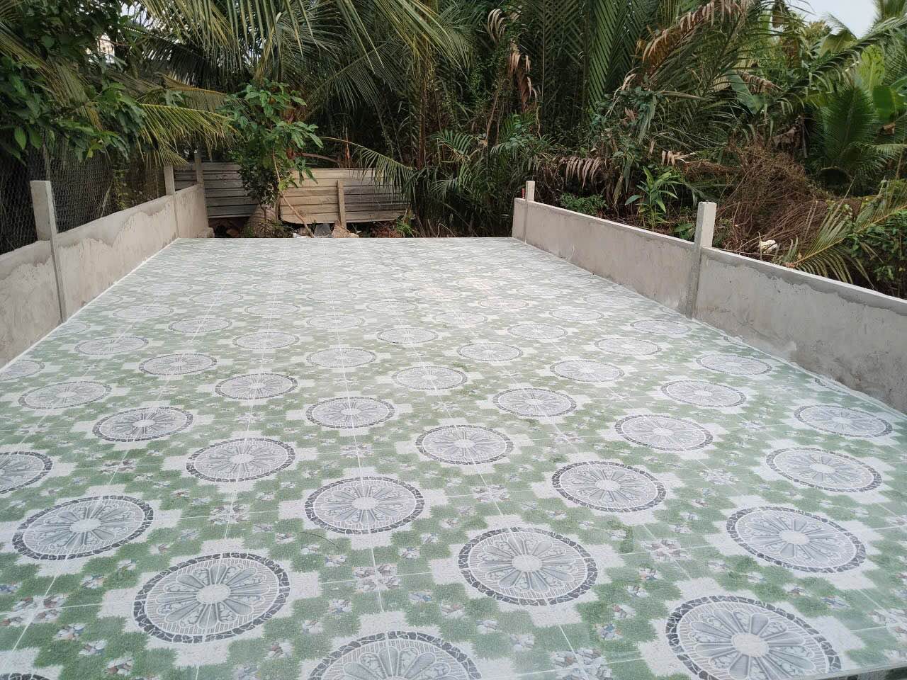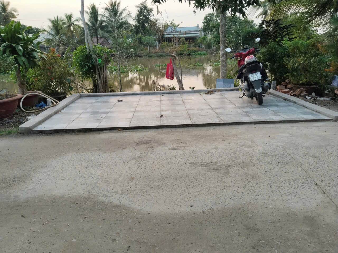 Phía sau nhà có sân lót gạch rộng 5.2x12m. Khu vực này còn có thể tận dụng phần mé sông để xây dựng nhà mát, tạo không gian thư giãn.