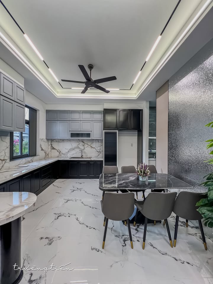 - Không gian phòng khách và bếp được thiết kế mở, rộng rãi.