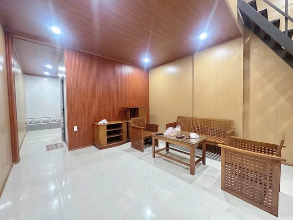 Ngôi nhà có diện tích chiều ngang 4m và chiều dài 15,5m, tổng diện tích mặt sàn phù hợp cho nhiều mục đích sử dụng. Kết cấu gồm 1 trệt và 1 lửng, được bố trí công năng hợp lý bao gồm: