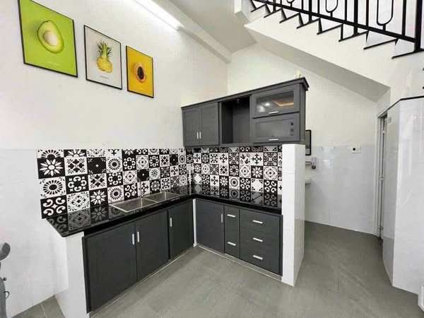 - Khu vực bếp gọn gàng, đầy đủ tiện nghi cơ bản cho việc nấu nướng.