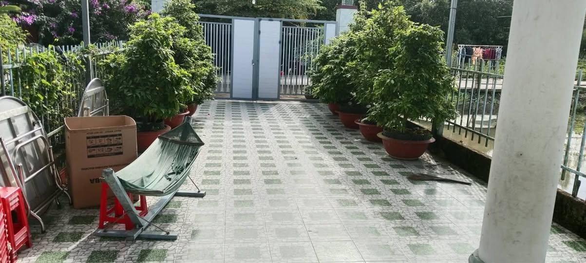 Phía sau nhà là một khu đất rộng lớn, được quy hoạch thành không gian xanh mát mẻ, lý tưởng để trồng cây ăn trái và có sẵn ao nuôi cá. Toàn bộ khu vực này đã được rào chắn cẩn thận bằng lưới B40, đảm bảo an toàn và riêng tư tuyệt đối. Ngôi nhà có hướng Đông Nam, giúp không gian sống luôn mát mẻ và đón gió tự nhiên, tạo cảm giác thoải mái cho cư dân.