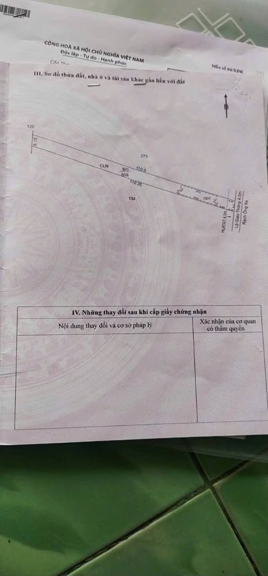 - Tổng diện tích: 658m², với mặt tiền ngang 6m và chiều dài 110m.