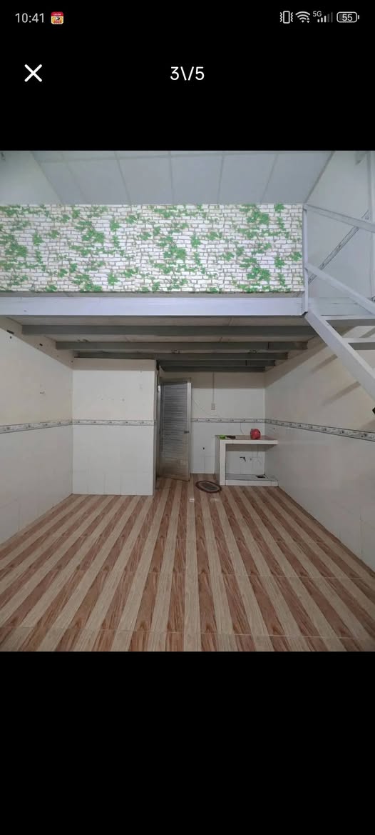 Phòng trọ có thiết kế trệt lững hiện đại, tối ưu hóa diện tích sử dụng. Diện tích mặt sàn là 4m x 4m, kết hợp với phần lững tạo nên tổng diện tích sử dụng ước tính khoảng 25m². Cấu trúc này rất phù hợp cho cá nhân hoặc cặp đôi, mang lại không gian sinh hoạt chung ở tầng trệt và khu vực nghỉ ngơi hoặc làm việc riêng tư trên gác lững.